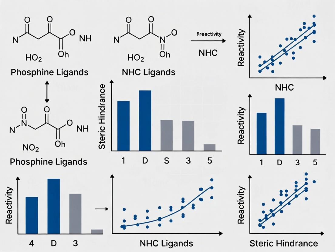 The performance of NHCs and phosphines in cross-coupling is governed by distinct electronic and steric parameters.