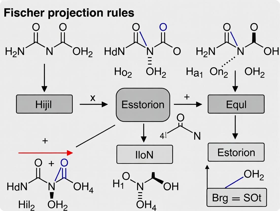 Mastering Fischer projection rules is not a mere academic exercise but a critical skill for ensuring stereochemical accuracy in biomedical research and drug development. From foundational conventions to advanced troubleshooting, a rigorous approach prevents costly misassignments that can derail compound characterization and efficacy studies. The validation of 2D projections with modern analytical and computational tools forms an essential feedback loop, cementing the reliability of stereochemical data. As therapeutics increasingly target stereospecific interactions, the precise application of these rules underpins rational drug design, mitigates the risks associated with inactive or toxic enantiomers, and ultimately supports the development of safer, more effective clinical agents. Future directions will involve tighter integration of classical projection methods with AI-driven structure prediction and automated stereochemical analysis pipelines.