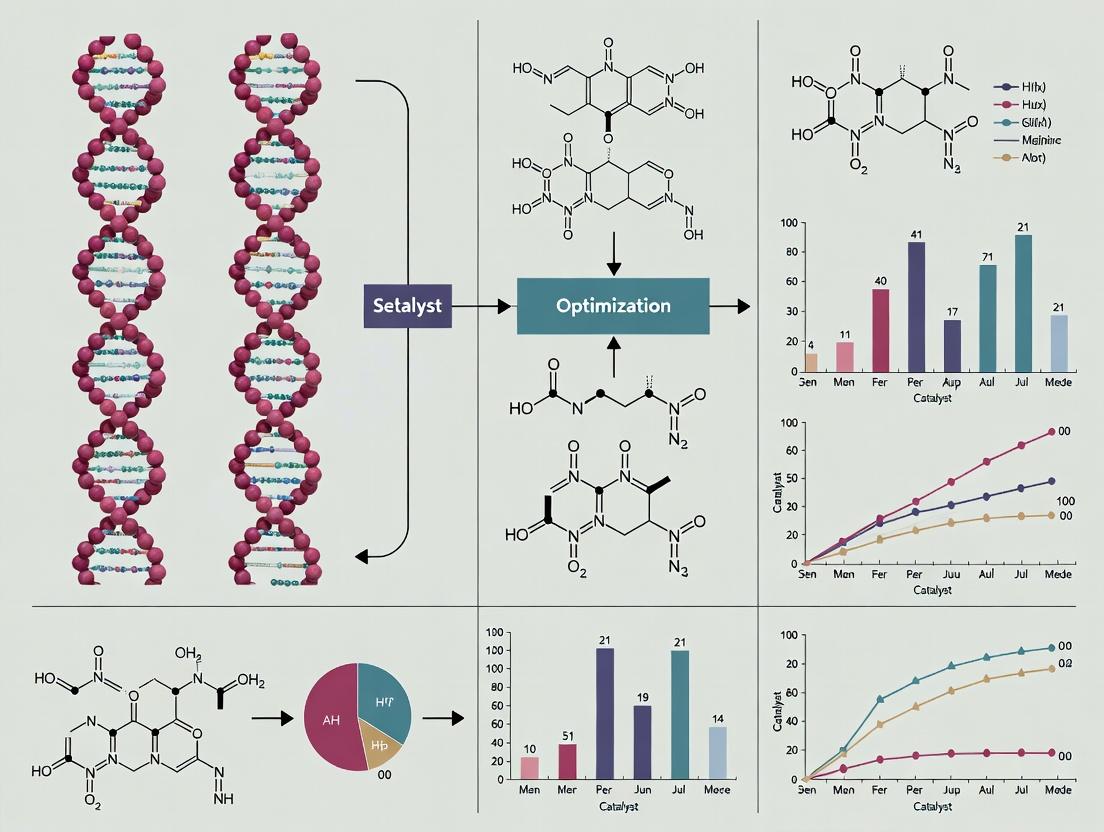 Encoding is the method of recording a compound's synthetic history into its associated DNA tag. The predominant method is recorded by synthesis, where a unique DNA codon (a short, predetermined sequence) is appended via PCR or ligation after each chemical step. For catalyst selection, more sophisticated strategies like pharmacophore encoding are emerging, where the DNA sequence may also encode spatial information about functional group orientation. A critical requirement is the stability and fidelity of the DNA tag throughout synthesis and selection, especially under potential catalyst screening conditions (e.g., varying pH, temperature, or metal ions). Next-generation sequencing (NGS) is used for final decoding.
