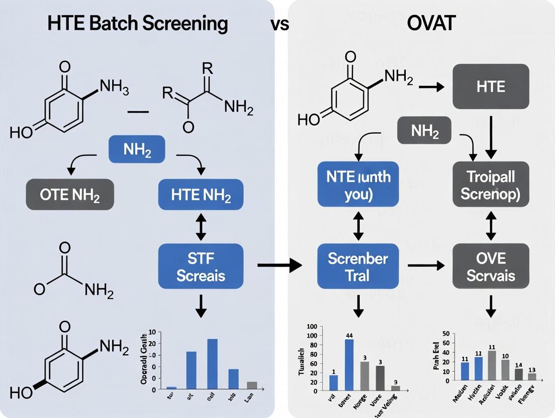 The choice between HTE batch screening and OVAT is not a binary selection but a strategic decision based on the experimental goal, system complexity, and available resources. OVAT remains invaluable for deep, causal understanding in controlled settings. However, HTE offers an unparalleled advantage in efficiently exploring vast multidimensional spaces, uncovering critical interaction effects, and dramatically accelerating the empirical optimization cycle in drug development. The future lies in intelligent, integrated workflows that leverage HTE for broad exploration and OVAT for focused validation, all guided by statistical design principles. Embracing HTE methodologies, supported by robust data analytics, is becoming essential for maintaining competitiveness in biomedical research, enabling faster translation from discovery to clinical application. Future directions will see increased integration of AI and machine learning to design HTE campaigns and interpret their complex outputs, further closing the loop between high-throughput experimentation and predictive science.