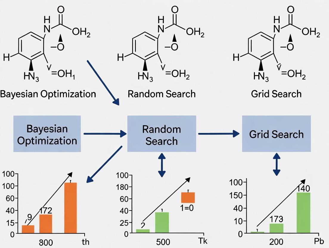 The efficacy of machine learning (ML) models in drug discovery is profoundly dependent on hyperparameter optimization (HPO). Selecting optimal hyperparameters can be the difference between a model that identifies a viable lead compound and one that fails. This guide presents a comparative analysis of three primary HPO methods—Bayesian Optimization, Random Search, and Grid Search—within the context of molecular property prediction, a cornerstone task in early-stage discovery.